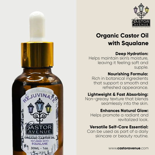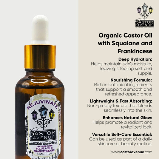 At Castor Avenue, we offer skincare solutions that harness the power of nature to address your skin’s unique needs. Our carefully crafted castor oil blends are infused with potent ingredients like squalene, frankincense, and willow bark, providing a range of benefits for every skin type: